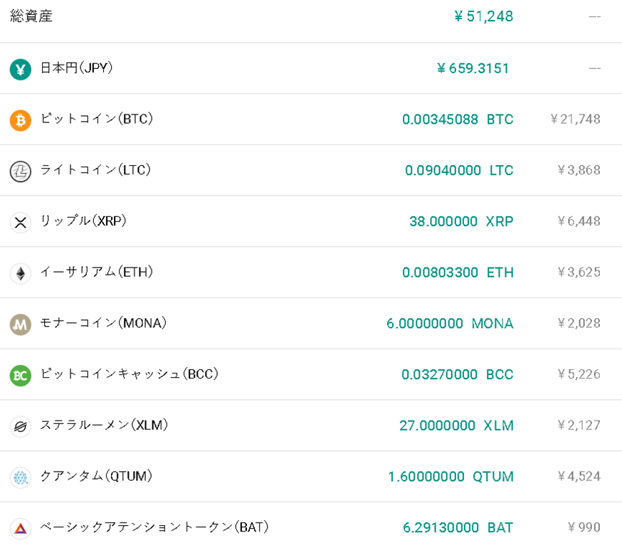 図3 所持済仮想通貨(5/10 22:00現在)