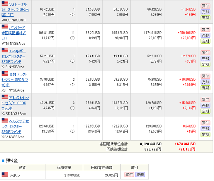 SBI証券での様々なセクターの米国株ETFを購入してきて、運用額が90万近くまできました。順調に購入を進めていけているかなと思います。 SBI証券の結果は以上になります。