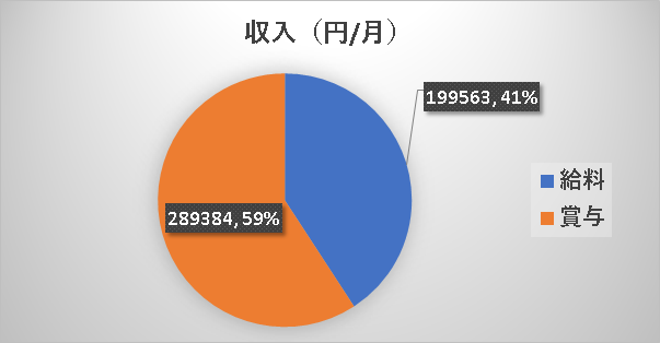基本的には、残業もないので基本給のみ。毎月の手取りはほぼ同じ金額です。今回は賞与が無事に入金されたということで、賞与も入れました。