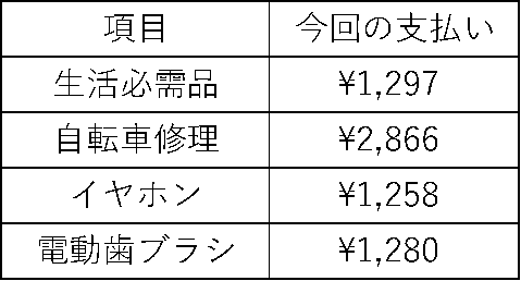 生活費に入れているのは、いわゆる生活必需品や家電、雑貨等ですね。種類が多いので全部ではないですが、洗剤、ティッシュ、歯ブラシ、歯磨き粉、せっけん、シャンプー、などでしょうか。 だいたい20日にウエルシア薬局でまとめ買いをしています。近くにウエルシアがあって本当に助かる!ありがとうウエルシア!!! 普段の支出額としては1,000円程度ですね。今回は、愛車の自転車がパンクして修理に出したこと、愛用の電動歯ブラシが壊れたので購入したのと、イヤホンを新たに購入したことで、かなり多めの6,701円でした。