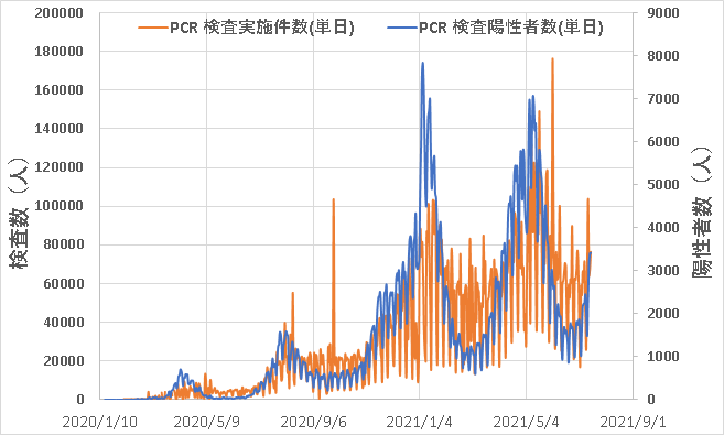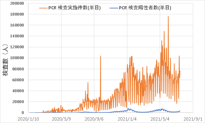 PCR検査数と陽性判定者数のグラフは明らかに相関があるというのは周知の事実かもしれません。