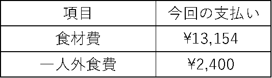 食費に入れているのは、普段の食事の食材費と自分一人での外食費になります。(出張先での食事については、手当が出るので含んでいません)