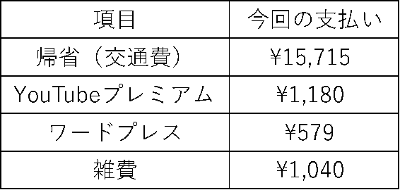 今回は、急遽帰省することになったため、帰省交通費ということで15,715円を計上(片道)しました。戻ってきたのが20日を過ぎたため、帰りの分は8月分に計上します。