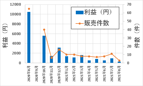 当初は、月5,000円程度の利益がありましたが、最近は1,000円もないくらいになっています…。そろそろ、手持ちだけでは限界が続きつつありますね。少しずつでも売り上げがあるのは、ありがたいことです。