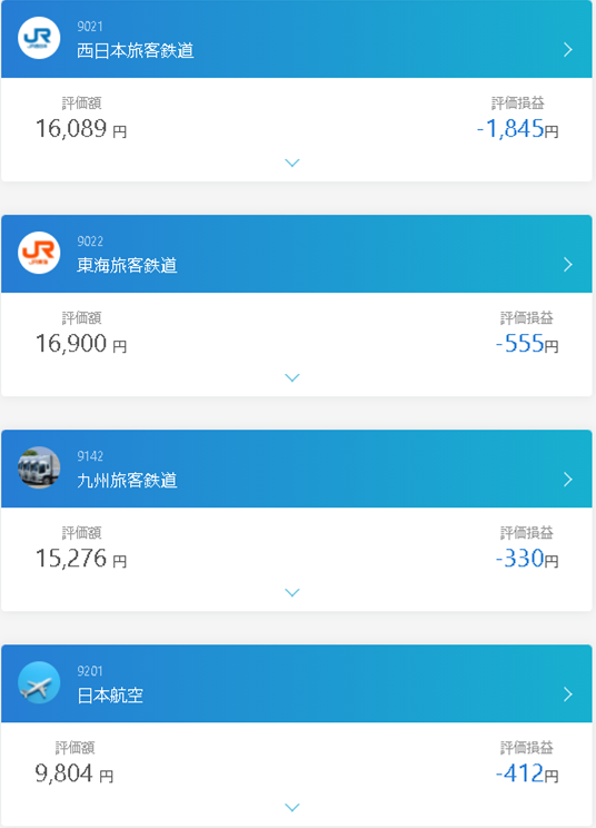 SBIネオモバイル証券では、航空株、JR株などの個別株を中心に、少額運用をしています。日本株にはあまり力を入れるつもりはなくて、余裕資金のさらに余裕資金で運用をしています。応援投資のようなものですね。