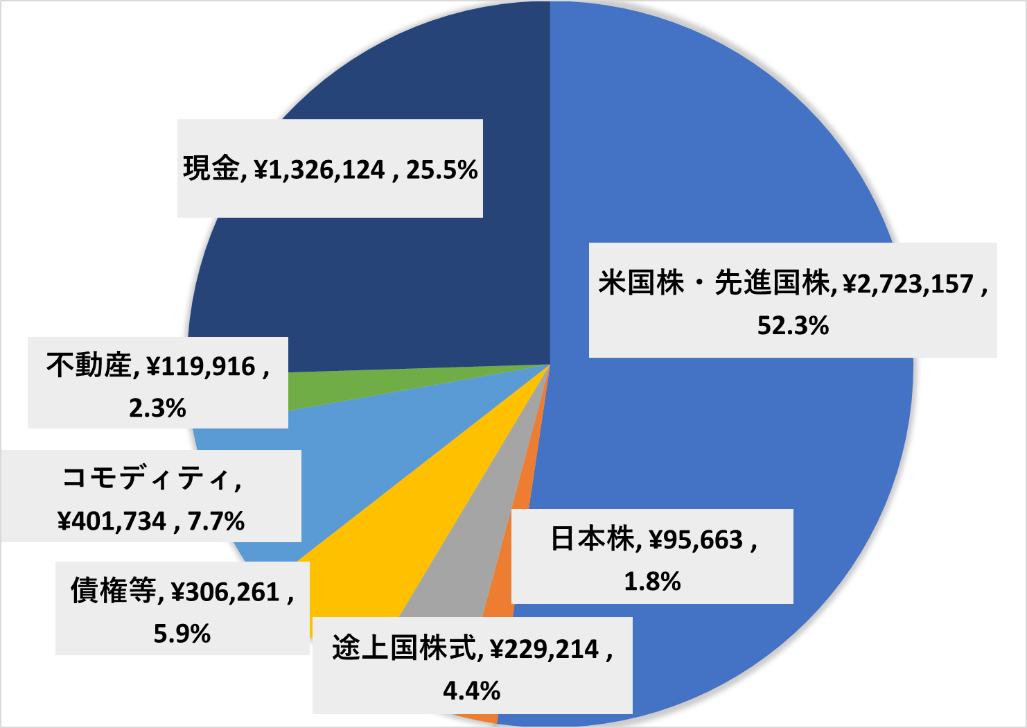 貴金属類やこれからはビットコインも少しづつ入れつつ、生活防衛資金として現金率も一定の割合購入して、ポートフォリオの分散を一層進めていきたいと考えています。