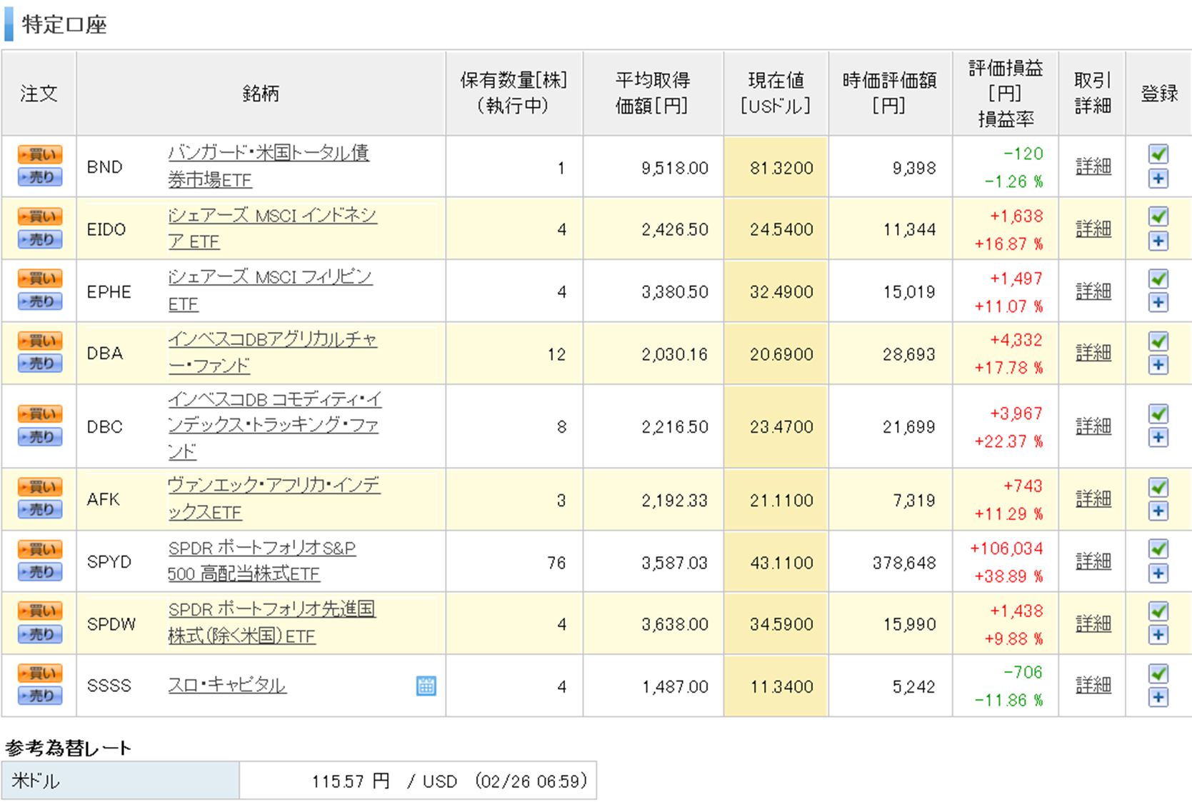 楽天証券の米国株のほとんどはSPYDです。(あくまで配当目当てですが。)含み益も出る上に、さらに配当もあれば気持ち的にはかなり安心です。 ポートフォリオも多様性を持ったものにしていきたいということで、様々な銘柄の購入を進め、一つの銘柄に集中しすぎないように注意をしたいところです。