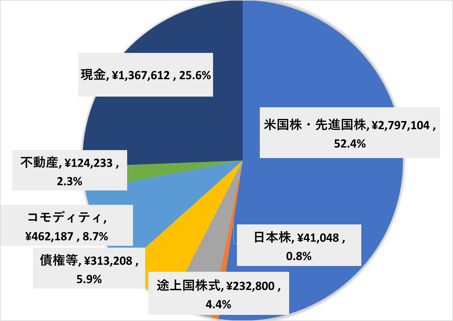貴金属類やこれからはビットコインも少しづつ入れつつ、生活防衛資金として現金率も一定の割合購入して、ポートフォリオの分散を一層進めていきたいと考えています。