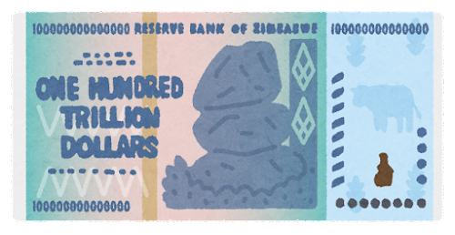 さすがに、ジンバブエのようにハイパーインフレにはならないと思いますが、緩やかなインフレによって、後々給料に反映されるなら良いですね。給料が上がらないむしろ下がってくるような状況が続けば、物価が上がっているのにもかかわらず収入が減る「スタグフレーション」ということになります。