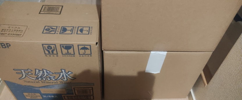 2Lの水6本と段ボール2箱分です。