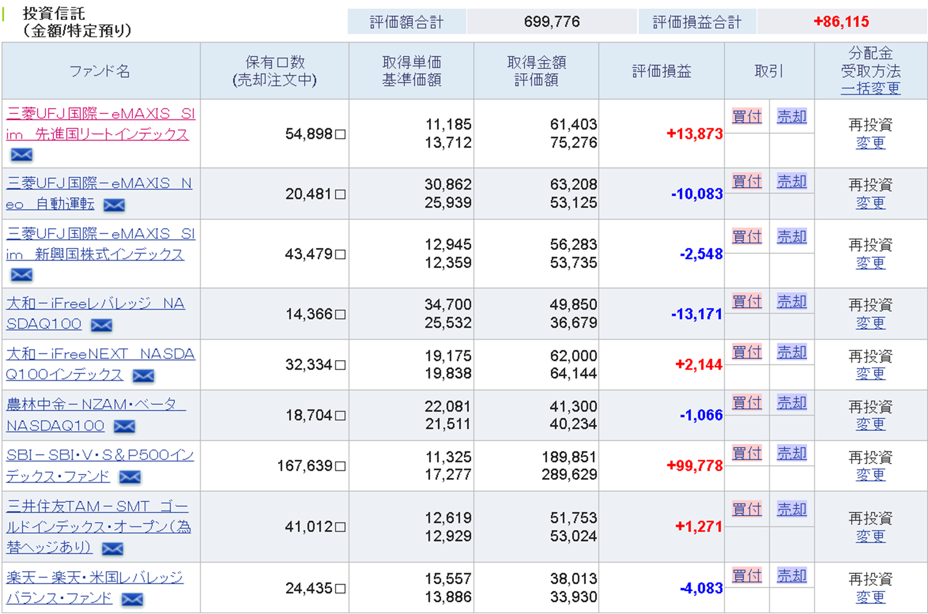 そして毎日積み立て額については、iFreeレバ:250円、先進国REIT:200円、自動運転:350円、新興国株:200円、iFreeNEXT:250円、農林中金:250円、ゴールド:200円、SBIバンガード:250円、USA360:250円としています。