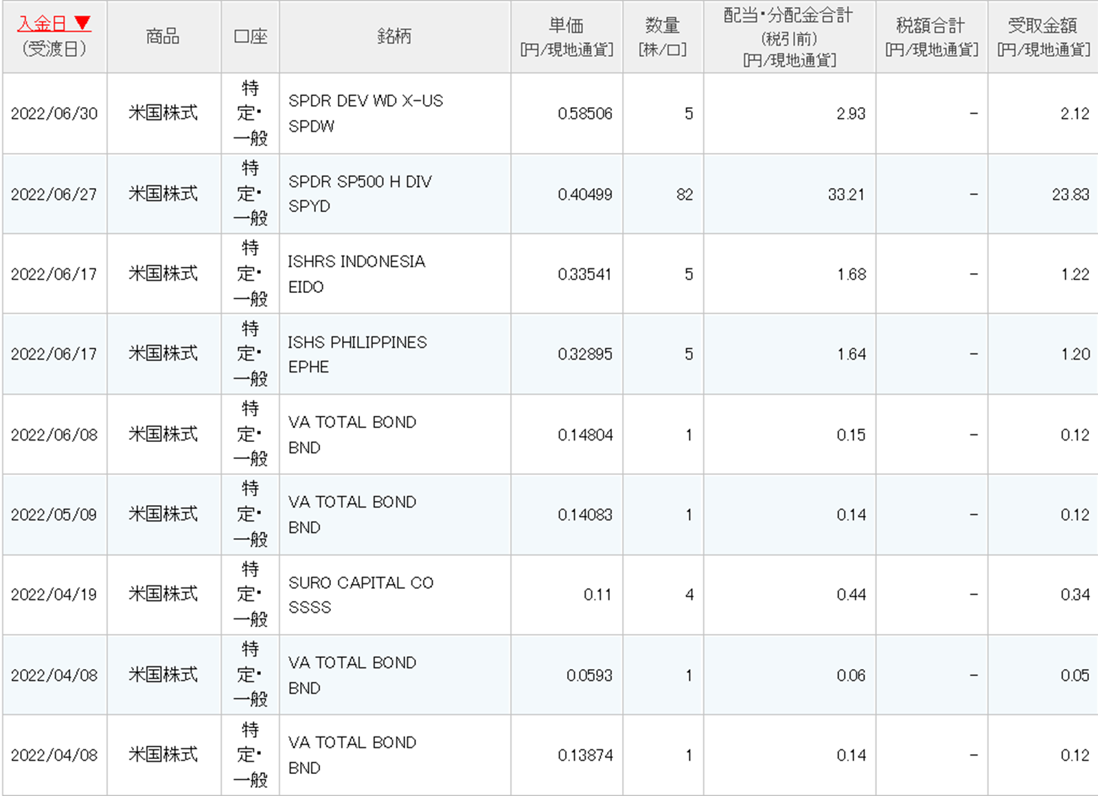 とりあえず、今四半期の各種配当金については以下のようになりました。
