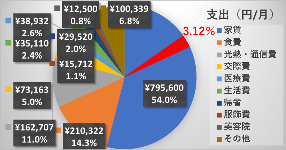 私の年間支出が約150万円(2021年実績、奨学金の返還除く)ということなので、四半期換算で37.5万円になります。今回の配当金が約11,600円ということになりましたので、約3.12%ということになります。(前回3月の計算では、2.45%だったので少しアップしました!もちろん、この配当があと4回続くこと前提での結果です。)