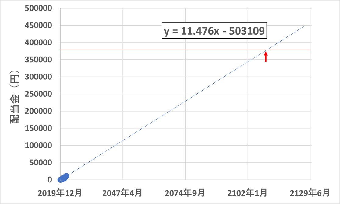 (前回3月配当の時に計算したものでは、2119年12月配当だったので、10年縮まりました(笑))