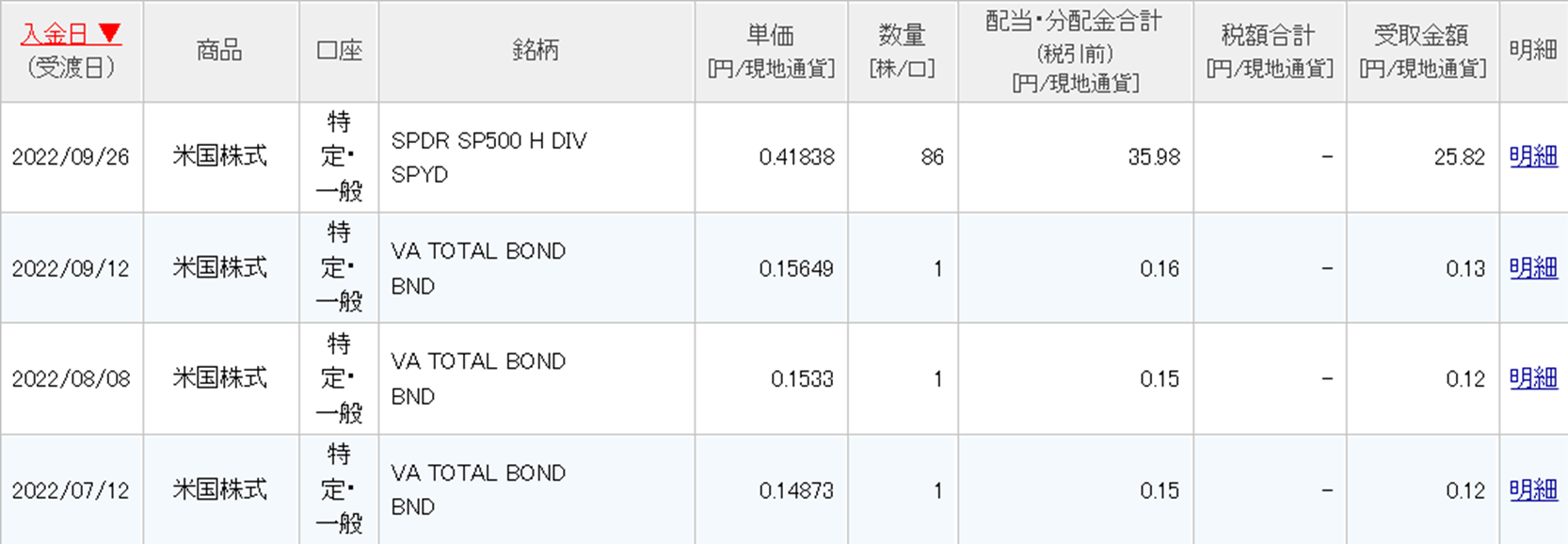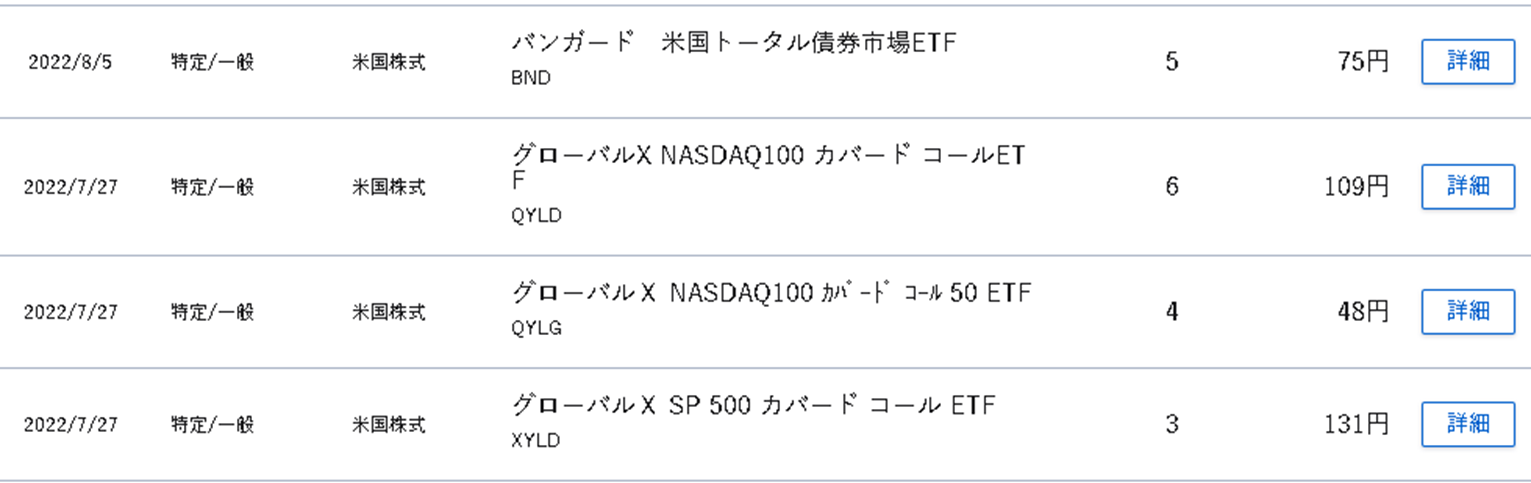 とりあえず、今四半期の各種配当金については以下のようになりました。
