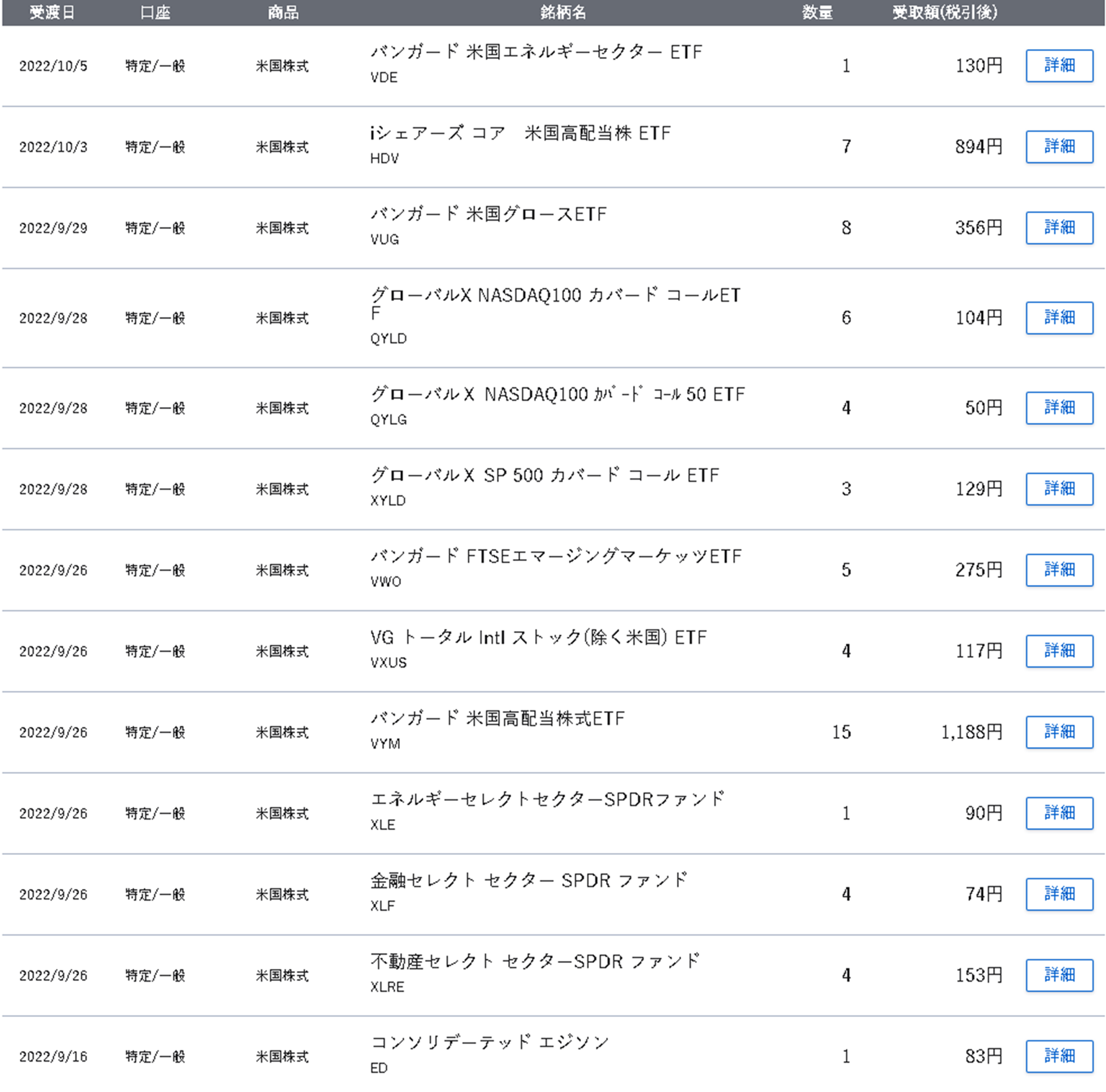 ということで、7~9月期の配当が揃いましたので、今回も報告したいと思います。前年から増配したものもあれば、減配したものもあります。それらを3か月に1回まとめるのが楽しみでもあります。特に3,6,9,12月は、米国高配当ETFであるSPYD、VYM、HDVの配当月ということで、毎回楽しみにしながら入金されているのを待っています。