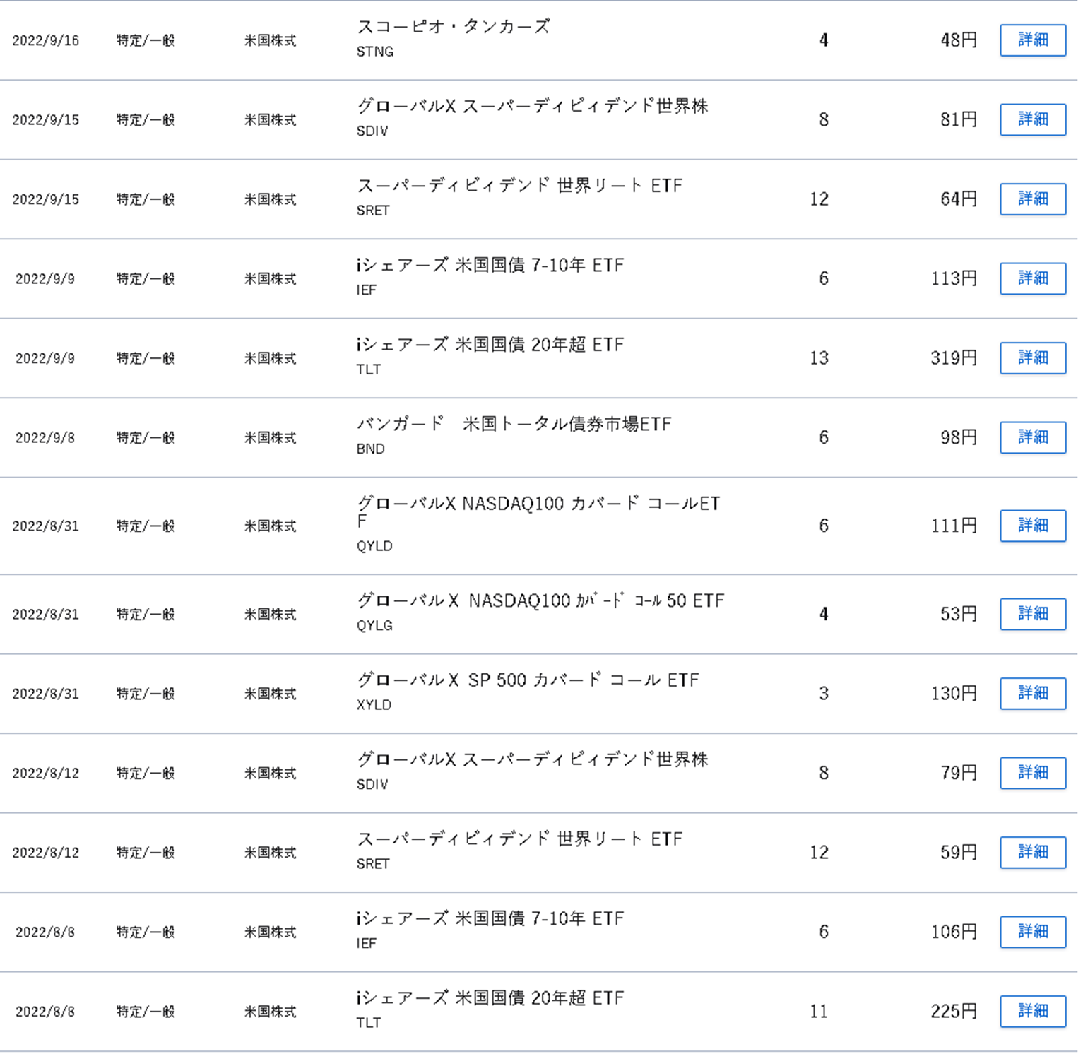 また、高配当ETF以外にも購入を進めた様々なETFや株式の配当も重なったため、2022年4月1日以降の配当の入金額の合計額についての報告にしたいと思います。(以降も同様に10月頭に7月~9月分といった感じで、3か月ごとに振り返りを行いたいと思っています。)