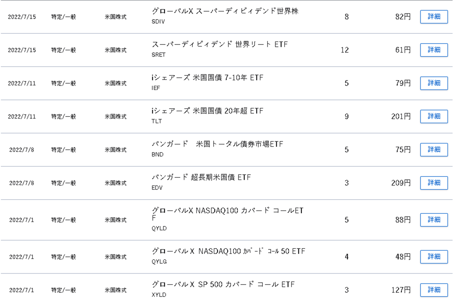 図2 各配当金(7/1以降、SBI証券)