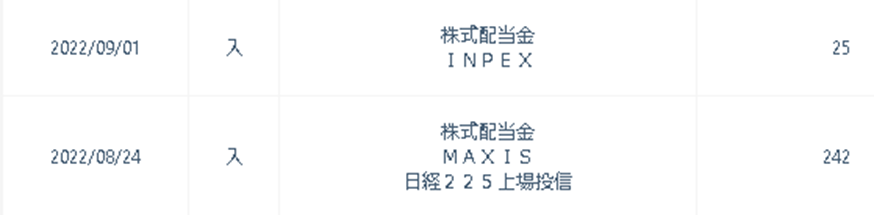 SBIネオモバイル証券では、日本株の購入を行っており、そちらの配当も入るようになりましたので、新たに追加しました。