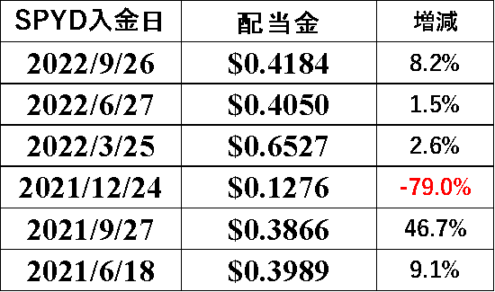 表3 SPYD配当推移