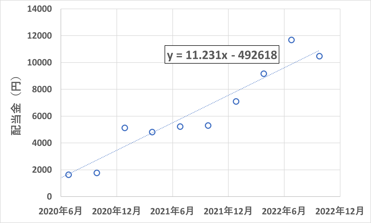 今回の配当ですが、過去一番となった前回よりも若干の減少ということでしたが、円安の影響もあり前回に引き続き1万円以上となりました。(今回は1ドル145円で計算しています。)
