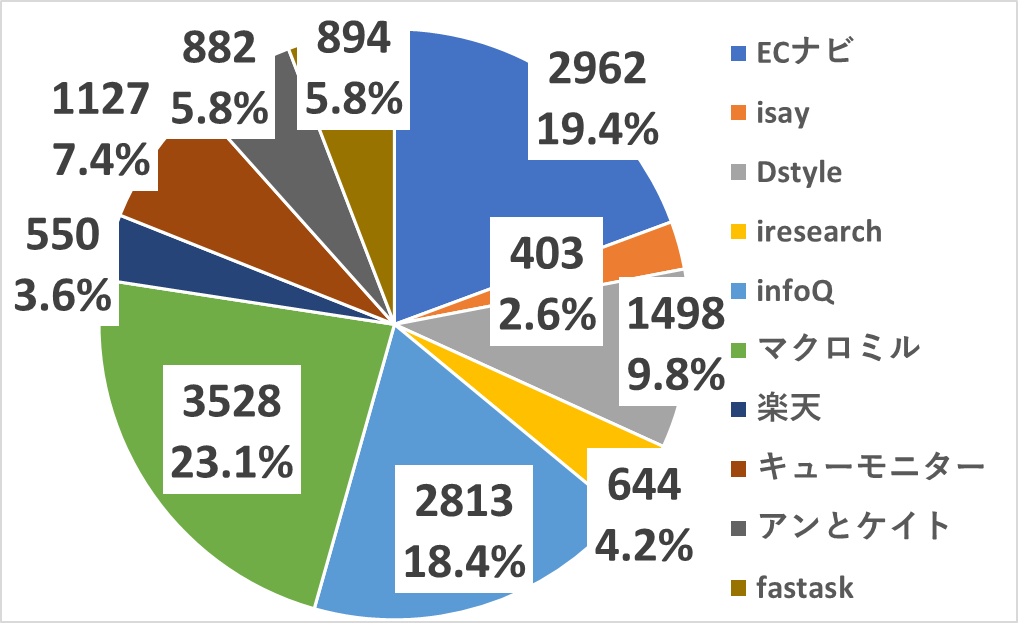 トップ3の合計で、計6割超ということでした。昨年までは、トップ3で8割近くありましたが、新たに始めたキューモニター、アンとケイト、fastaskのポイントによって、獲得ポイントが分散されたように思います。