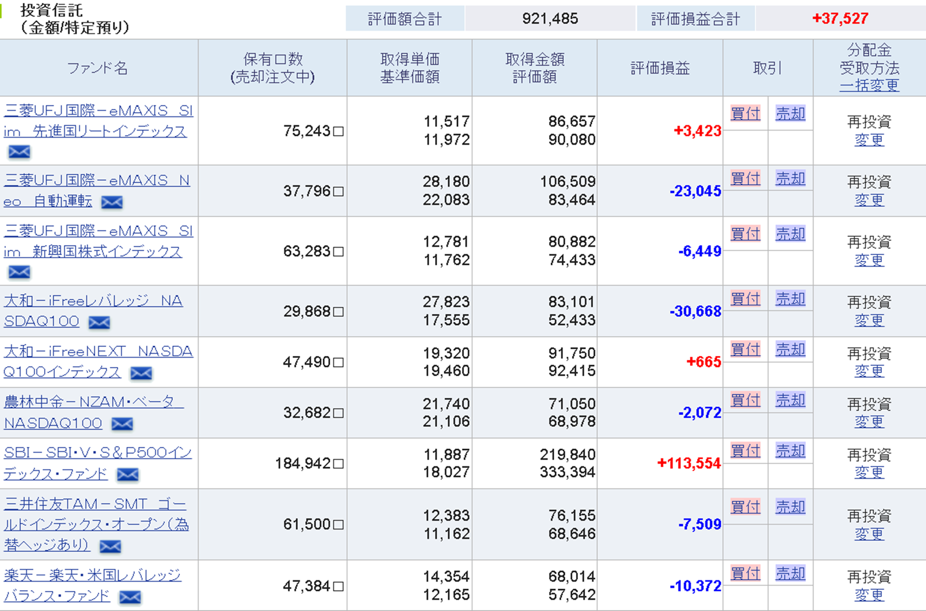 そして毎日積み立て額については、iFreeレバ:250円、先進国REIT:200円、自動運転:350円、新興国株:200円、iFreeNEXT:250円、農林中金:250円、ゴールド:200円、SBIバンガード:250円、USA360:250円としています。