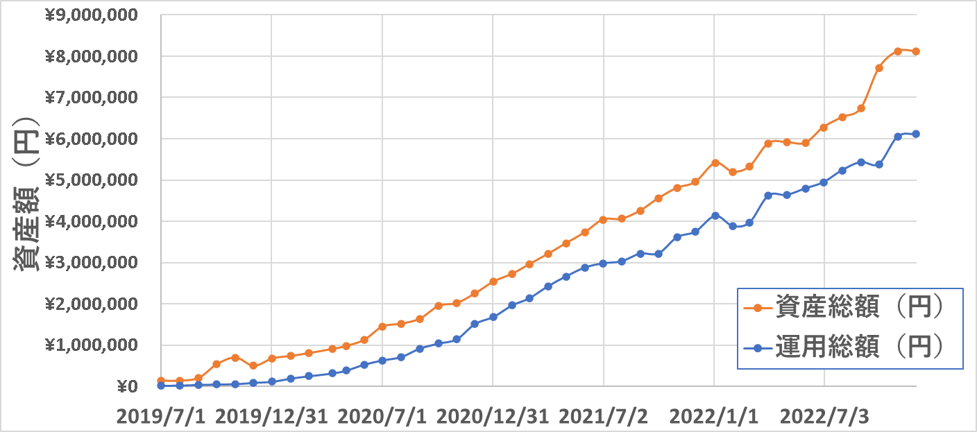 結果的にほとんど横ばいでしたね。毎月家計収支で8~10万円のプラスとなりますが、運用の方でマイナスになったので、相殺してプラマイゼロということになりました。