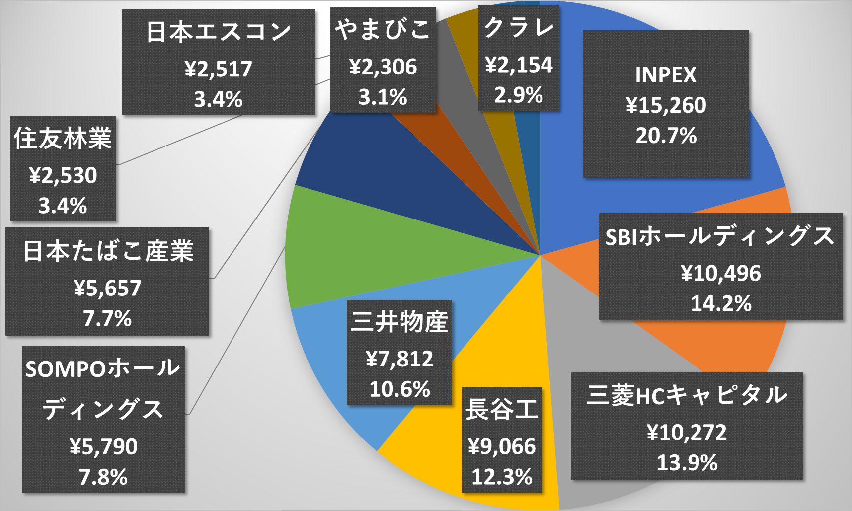 ここから生み出される配当を楽しみにしつつ、できる限り銘柄ごとに同じ比率にしていきたいと思っています。定期的に日本株の配当に関してもまとめていきたいと思っています。