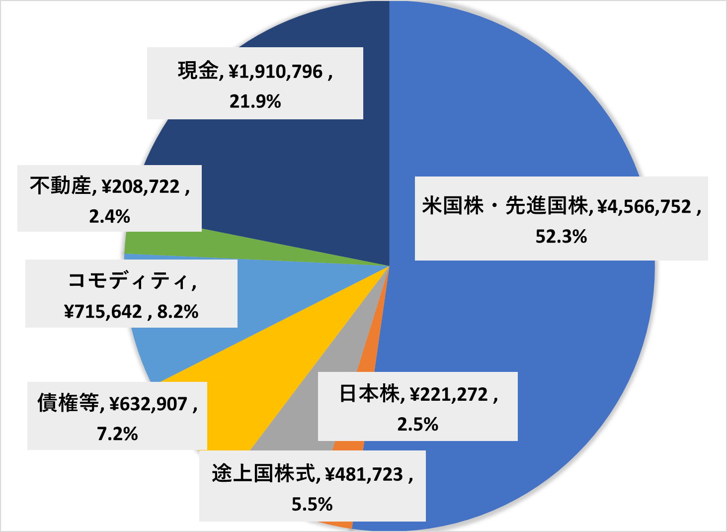 運用部分は、全体的にそれぞれ伸びてくれました。逆に現金は一気に減って、久々に10%台に突入しましたね。