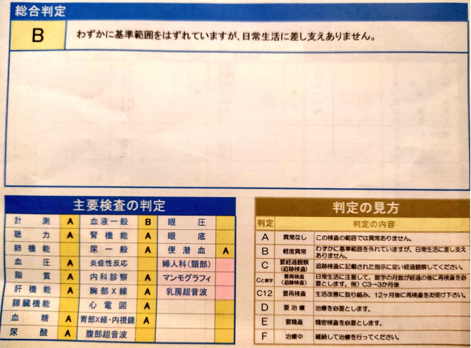 先日、受けてきた健康診断ですが、結果が返却されました。今年こそは、オールAを!という思いで、1年間?頑張ってきました(ごめんなさい、嘘です。少しだけ頑張ったのは1か月弱くらいです。)