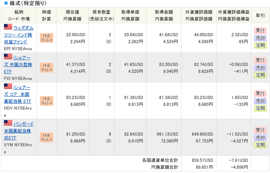 ドル建ての評価額はマイナスはほとんどなくなったので、配当込みでプラスマイナスゼロという感じです。長期で保有しながら、半永久的に配当をいただきたいところです。