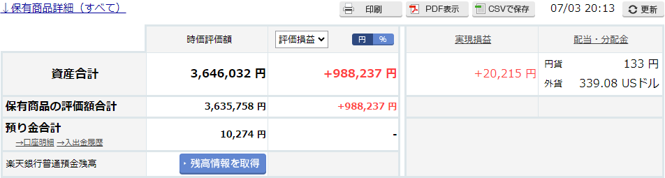 私が持っている口座についてできる範囲で公開したいと思います。(7/3時点のデータとなります。記事公開時点と多少の誤差が出るかもしれませんが、ご了承ください。)