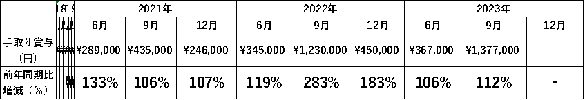 それでも、毎年10%以上は着実に賞与も増えていて、2023年も過去最高だった2022年くらいいただけるのであれば大変ありがたいことですね。(社長、いつもありがとうございます!引き続き、会社のために精進しますので、よろしくお願いいたします!)