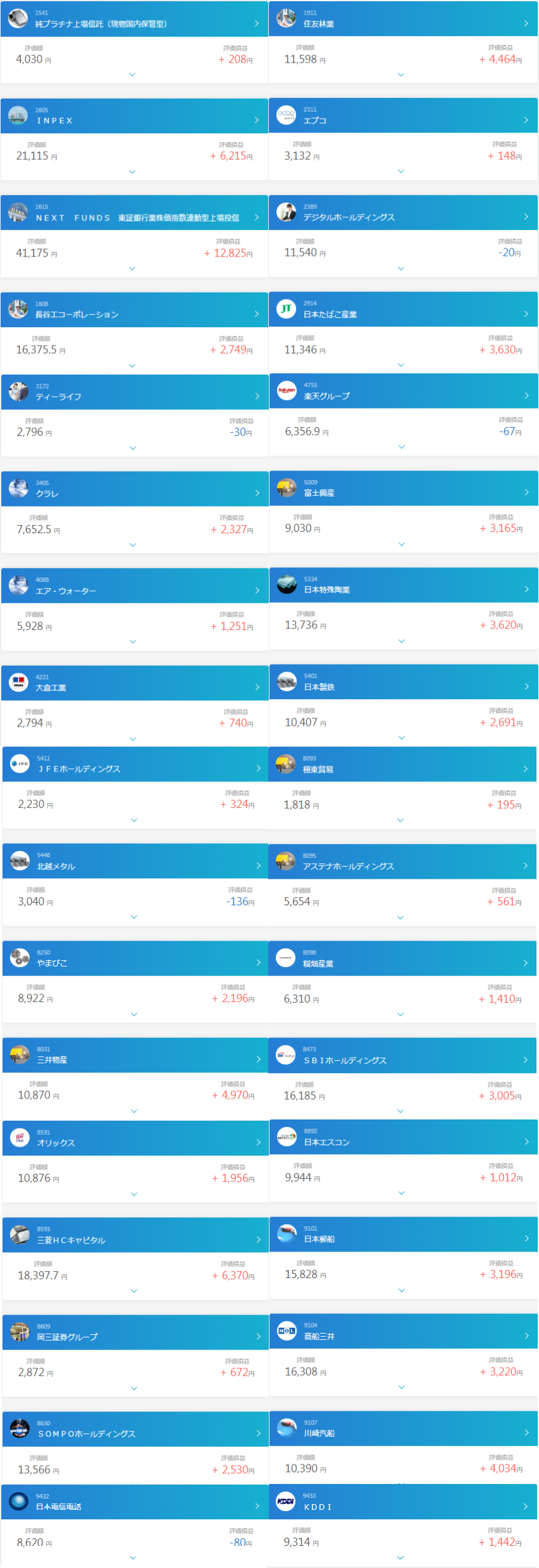 今のところ、買い付けした銘柄のほとんどはプラスになっていますね。