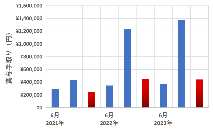 今回の賞与で、2023年の年収が確定することとなりました。