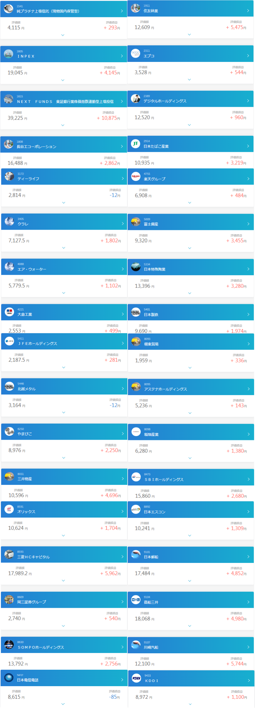 今のところ、買い付けした銘柄のほとんどはプラスになっていますね。
