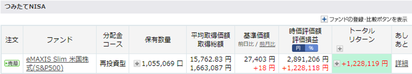 こちらの積み立て分も12月で終了で、現金が続く限りは保有し続けていきますが、現金がなくなり次第、新NISA購入のために売却を予定しております。