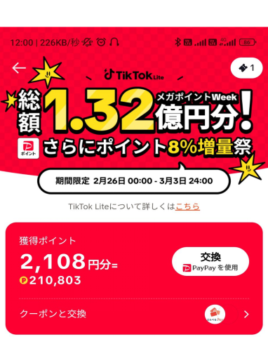 アンケートポイ活とは異なりますが、先日の記事で「TikTok Lite」に関する記事を更新していました。キャンペーンポイント以外にも、毎日のポイントもそこそこ入っているようで、月に1回このタイミングでお知らせしていこうかなと思っています。