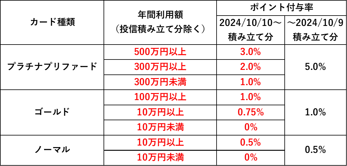 表1 SBI証券クレカ積み立て還元率について